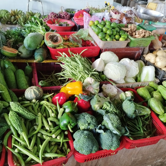 Chợ Ngã Năm tọa lạc tại khu phố 3, phường 5, thành phố Bến Tre, chợ tiếp giáp với đường Hoàng Lam và bùng binh Ngã 5, phường 5, thành phố Bến Tre. Được công nhận chợ đạt chuẩn văn minh vào năm 2011, hiện có 113 tiểu thương đang kinh doanh trên 130 quầy hàng, kios trong nhà lồng chợ, chuyên mua bán các mặt hàng lương thực, thực phẩm, hàng gia dụng thiết yếu như: Thịt gia súc, gia cầm các loại, thủy hải sản, rau xanh, củ quả, trái cây, hoa tươi, tạp hóa, bánh kẹo, đồ gia dụng, ăn uống…. Là chợ có lượng khách khá đông đúc, hoạt động mua bán nhộn nhịp, phục vụ bữa ăn hàng ngày và các mặt hàng thiết yếu cho mọi gia đình trong khu vực nội ô thành phố Bến Tre.
